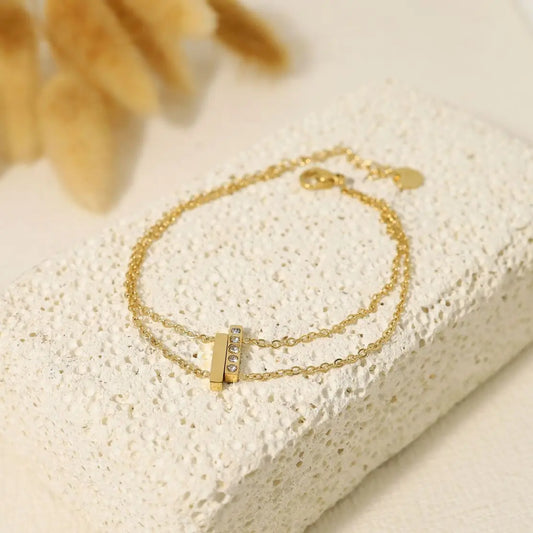 Bracelet double chaîne avec deux barres dont une dorée