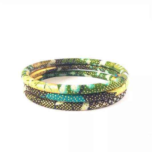 Bracelet en wax Turquoise khaki yellow golden
