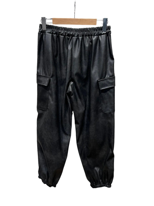 Pantalon cargo en faux cuir noir