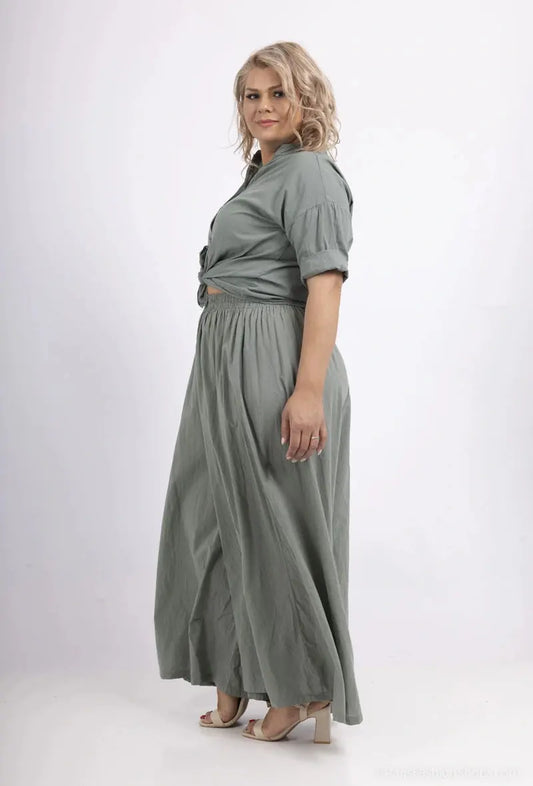 Pantalon à détail jean sur la taille kaki