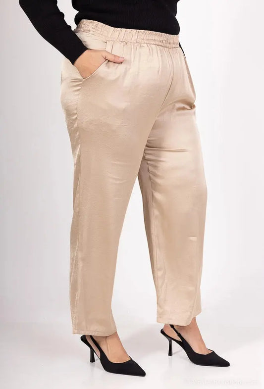 Pantalon unicolore à jambes larges en satine